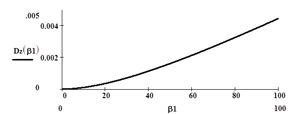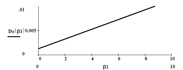 Рисунок 2.7 Зависимость дисперсии процесса на выходе первого линейного фильтра от его полосы пропускания.