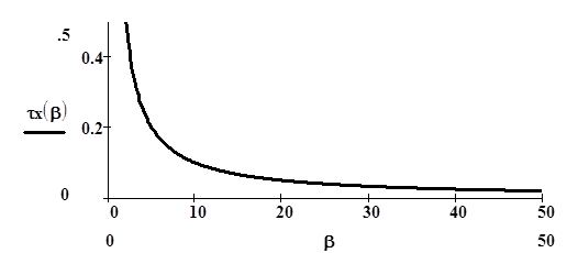 Рисунок 2.8 Зависимость времени корреляции процесса на выходе первого линейного фильтра от его полосы пропускания.