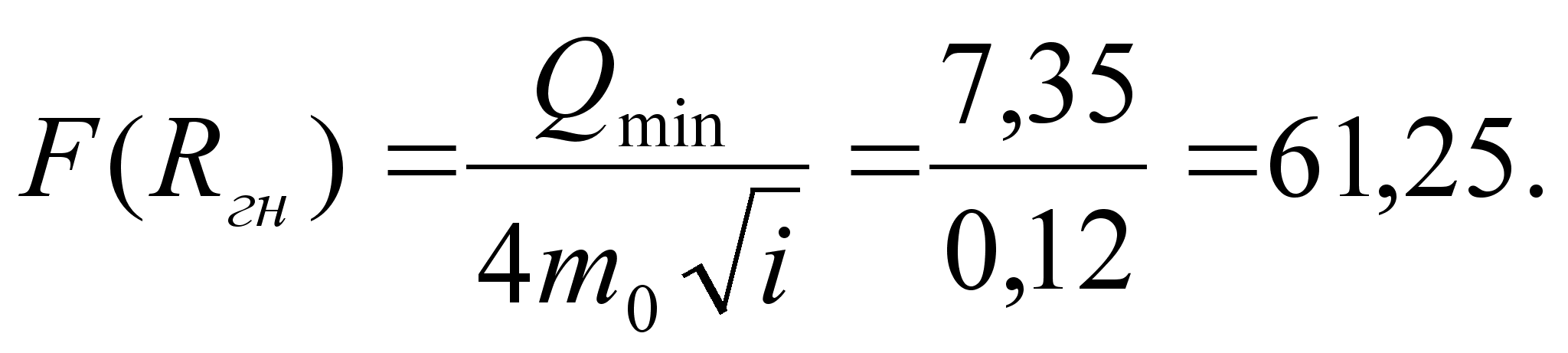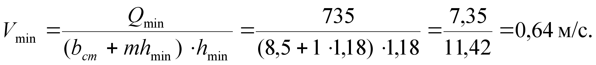 Определяется глубина потока в канале при пропуске минимального расхода: