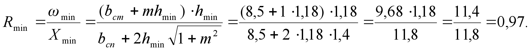 = 1,54 м.Сравниваем Rдоп с Rгн и принимаем расчётный гидравлический радиус сечения (R). Так как Rдоп Rгн то R Rгн 2,92 1,54, принимаем R = 1,38.