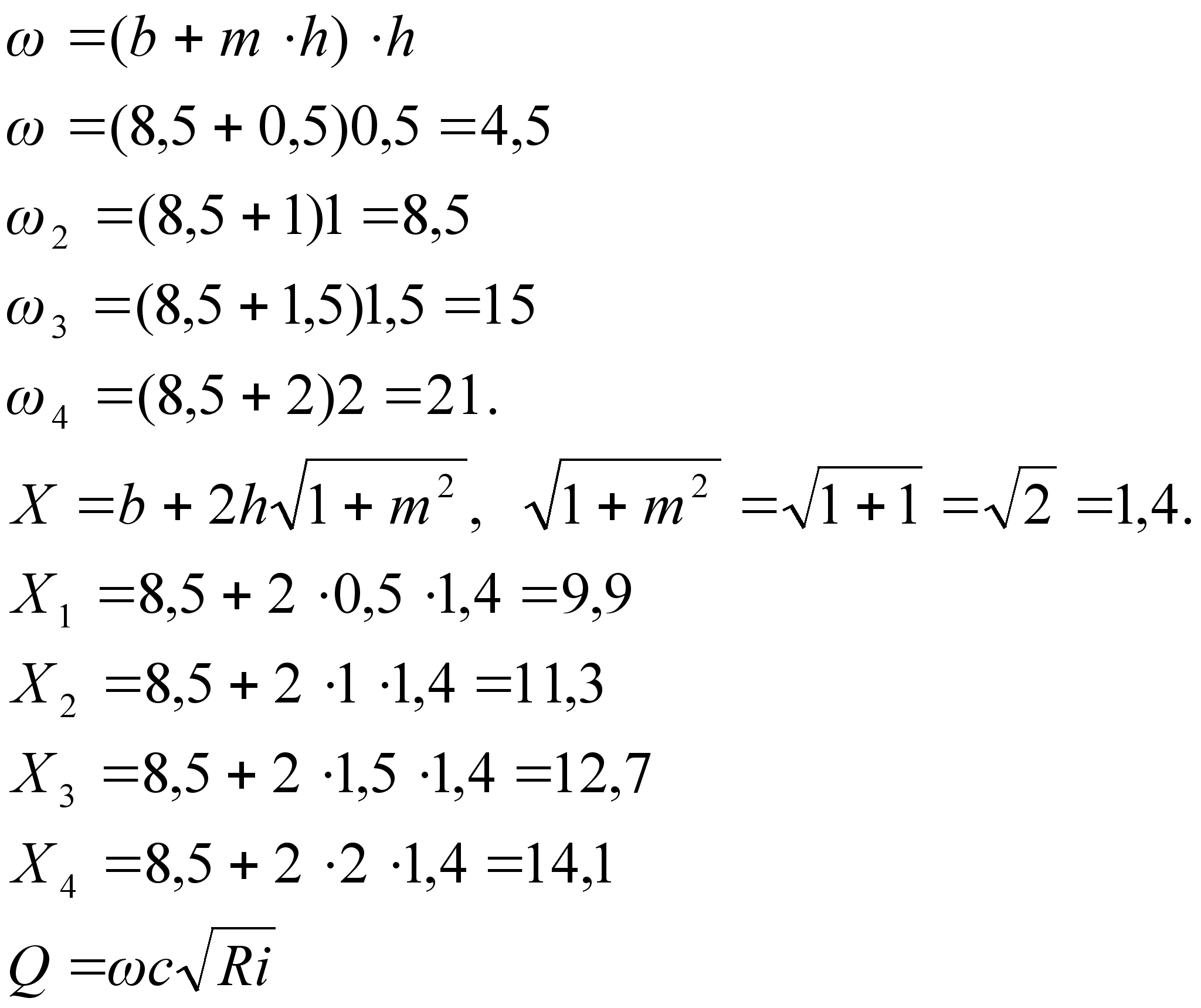 [1].Вычисляем ширину канала по дну и глубину потока в канале