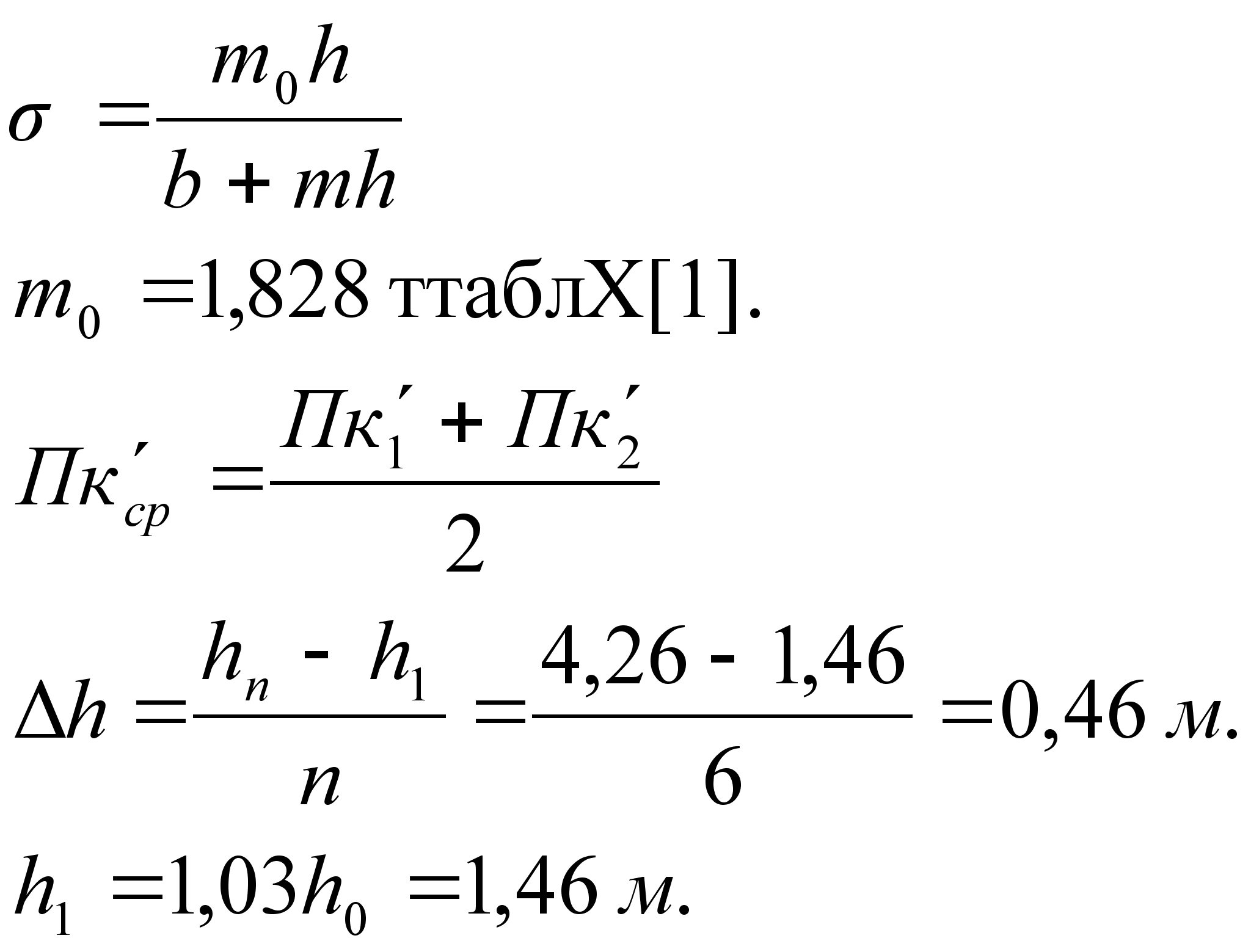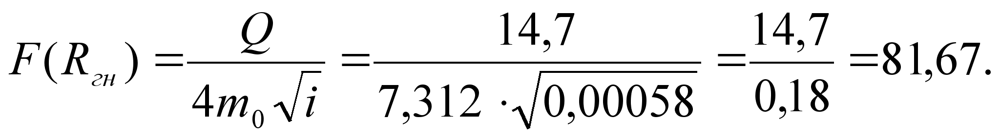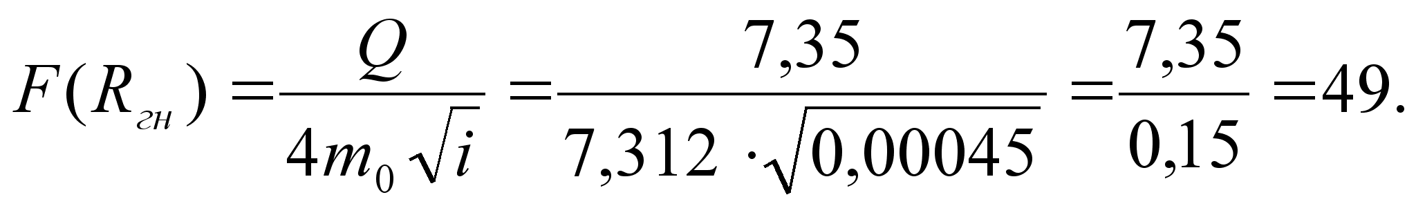Определяется глубина потока в канале при пропуске нормального расхода Qн при принятой ширине канала в м. Для этого вычисляется функция