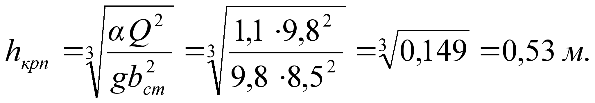 Qmax – максимальный расход канала м3/с.