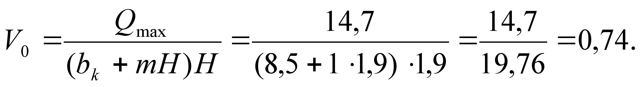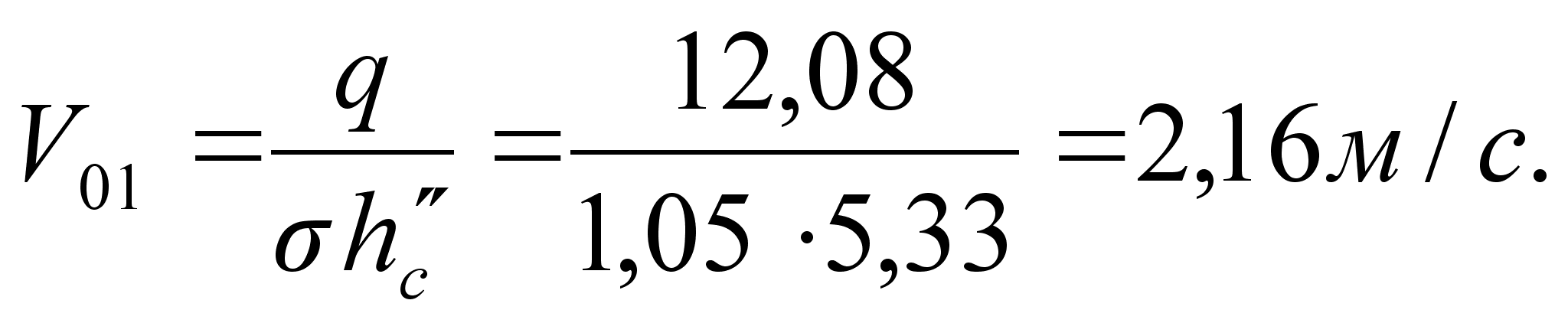 Определяется скорость потока пред водобойной стенкой: