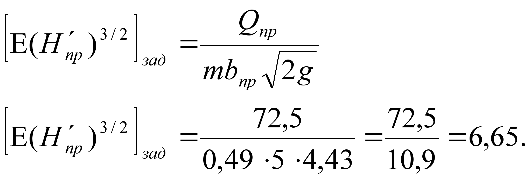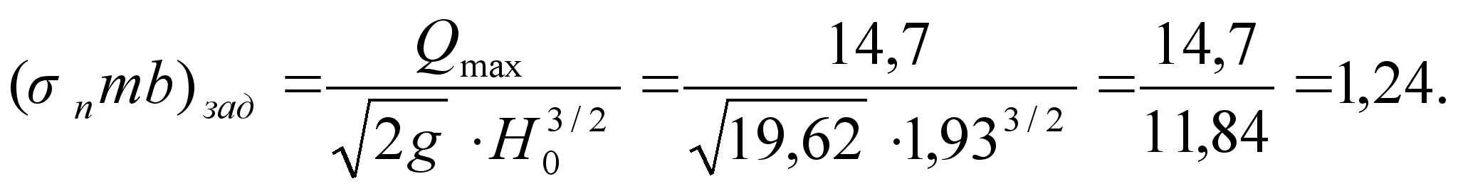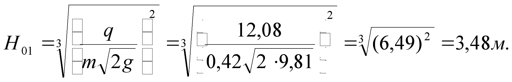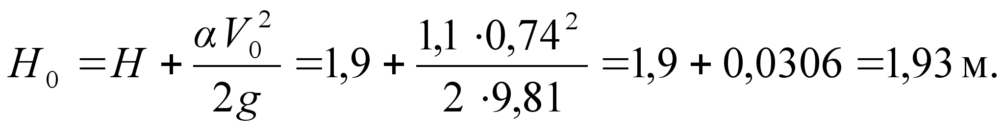 Определяется напор над водобойной стенкой без скоростного напора: