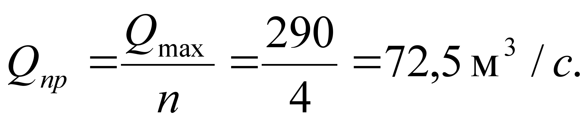 Расход Qн = 9,8 м3/сек. Qmax = 14,7. Qmin = 7,35.