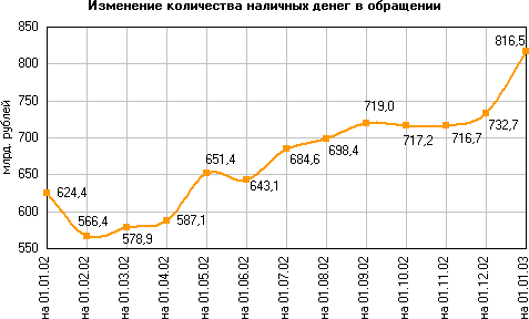 Денежная база – это сумма наличных денег (М0) и денежных средств коммерческих банков, депонированных в ЦБ в качестве обязательных резервов. Эти деньги имеют не только большую ликвидность, но и показывают дееспособность Центрального банка, его возможности выполнять свои обязательства. Некоторые экономисты называют их сильными деньгами или деньгами «высокой эффективности», поскольку эта категория денег может прямо контролироваться Центральным банком, чего нельзя сказать о других элементах совокупной денежной массы. Например, количество и сумма банковских вкладов зависит не только от эффективности политики Центрального банка, но и от того, как воспринимают эту политику инвесторы, доверяют ли они банкам или не доверяют. На 2003 год имеются следующие данные о денежной базе: