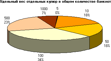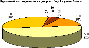 | Сумма, количество и удельный вес банкнот и монеты, находящихся в обращении, по эмиссионному балансу |
