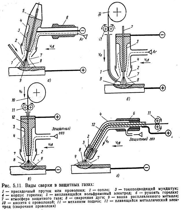 Сварка в атмосфере защитных газов в зависимости от степени механизации процессов подачи присадочной или сварочной проволоки и перемещения сварочной горелки может быть ручной, полуавтоматической и автоматической.