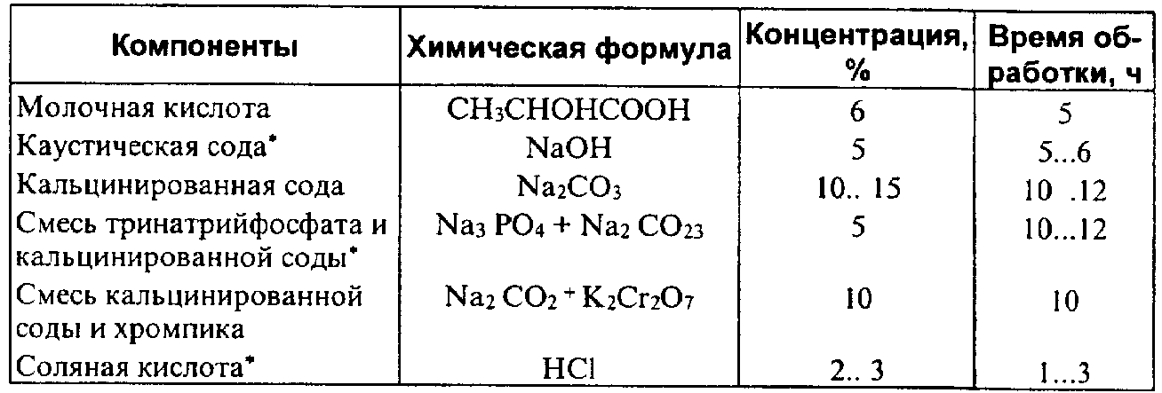 Примечание: * - нельзя использовать для очистки деталей из алюминия и его сплавов