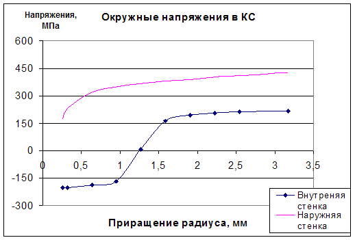 5. Принимаем окружные напряжения для каждой оболочки, согласно их температурам и деформации En по диаграмме деформирования стали ЭП53 и сплава БрХ08: (значения в Мпа)