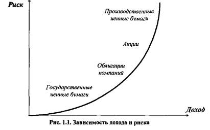 По уровню риска виды ценных бумаг располагаются следующим образом исходя из принципа: чем выше доходность, тем выше риск, и чем выше гарантированность ценной бумаги, тем ниже риск (рис. 1)