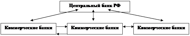 Двухуровневая банковская система основывается на построении взаимоотношений между банками в двух плоскостях - по горизонтали и по вертикали. (рис.1)