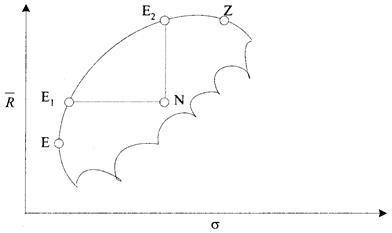 Меньшая величина риска портфеля 0,5A + 0,5I по сравнению с 0,5F + + 0,5I объясняется тем, что степень связи (корреляция) между доходностями акций эмитентов A и I (rАI = = 0,16) меньше на 0,67, чем степень связи между доходностями акций эмитентов F и I (rFI = 0,83) (см. [2]).