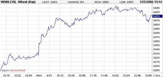 Возможно, придирчивый читатель скажет, что да, конечно, все расписано красиво. Но это все где-то далеко, в каком-то там Чикаго. А как это происходит у нас? Логичный вопрос. Обратимся к практике работы Узбекской республиканской товарно-сырьевой биржи (УзРТСБ). Для сравнения возьмем товарный актив, аналогичный тому, который мы привели в примере с Чикагской биржей – пшеницу. Сразу заметим, что все приводимые здесь графики взяты с официальных интернет-сайтов самих бирж. Итак, пшеница на УзРТСБ, рис. 3.