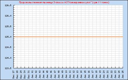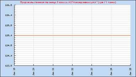 На рисунке представлен месячный график пшеницы продовольственной 3 класса АО «Навоидонмахсулот». Конечно, нам было бы интересно посмотреть более «мелкий» график. Интернет-сайт УзРТСБ представляет и недельный график. Приводим его на рис. 4.