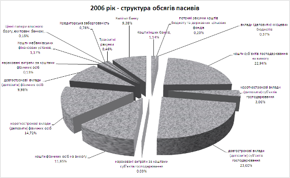 За 2006 рік зобов’язання банків України збільшилися на 57,7% або на 108,7 млрд. грн. і на 01.01.2007 становили 297,2 млрд. грн., в т.ч. нерезиденти – 23,7% від зобов’язань.