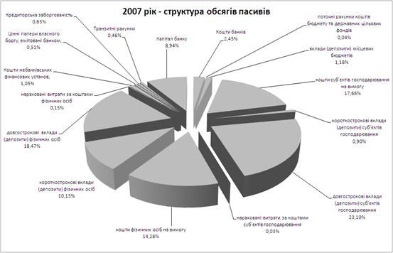 Протягом 2007 року активи банків збільшилися на 258,1 млрд. грн. або на 75,9% і становлять 598,3 млрд. грн. Загальні активи збільшились на 264,5 млрд. грн. або на 74,9% і складають 617,6 млрд. грн. Збільшення загальних активів відбулось, в основному, за рахунок збільшення кредитів, наданих банками, – на 216,7 млрд. грн. або на 80,3%, з них: кредитів, що надані суб’єктам господарювання – на 108,5 млрд. грн. або на 64,7%, кредитів, наданих фізичним особам, – на 75,9 млрд. грн. або на 97,6%.