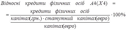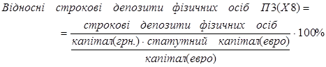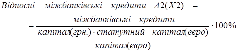 В розробленій моделі, для того, щоб можна було порівнювати банки з різними статутними капіталами на протязі певного інтервалу часу (чи один банк зі статутним капіталом, що змінюється кожен місяць) здійснений перехід до відносних (зведених) величин, тобто величин віднесених до статутного капіталу.
