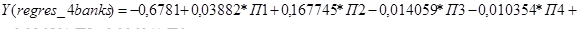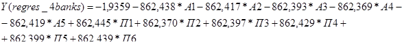 - проведена розробка регресійної багатовимірної математичної моделі розрахунку впливу структури ресурсної бази (пасивів) комерційного банку на рентабельність його роботи;