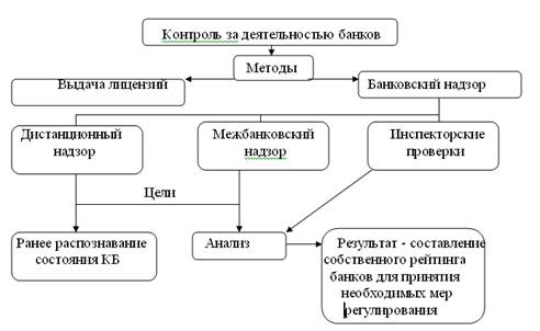 Контрольно-надзорная деятельность в банковской системе Российской Федерации достаточно разнообразна. Контрольно-надзорная деятельность Банка России сочетает в себе как регулирующее, так и управляющее воздействие на работу кредитных организаций с отведением преобладающего места и значения регулирующему методу.