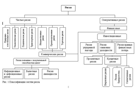 Спекулятивные риски – возможность получения как положительного, так и отрицательного результата: финансовые риски.