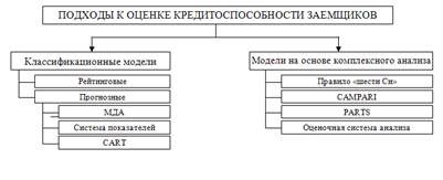 Удачной представляется данная классификация подходов к оценке кредитоспособности заемщиков коммерческих банков (см. рис. 1.1).