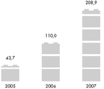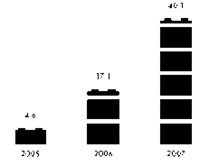 По пассивным счетам можно сказать о том, что ТрансКредитБанк в 2007 году впервые (за рассматриваемый период) взял кредит у ЦБ РФ на сумму 2000000 тыс. руб. Во всех статьях прослеживается только положительная динамика. Отметим, что резервы на возможные потери по условным обязательствам кредитного характера, прочим возможным потерям и по операциям с резидентами офшорных зон возрасли почти в 4 раза по сравнению с 2005 г.; почти в 3 раза выросли следующие показатели: средства кредитных организаций (увеличились на 197%) и вклады физических лиц (увеличились на 187%); выпущенные долговые обязательства (на 155%). Из источников собственных средств выделим увеличение прибыли к распределению за отчетный период в 4,5 раза по отношению к 2005 году. Наибольший удельный вес в пассивных счетах составляют средства клиентов (некредитных организаций) – 67%, а наименьший – собственные акции (доли), выкупленные у акционеров (участников), они составляют всего 0,001% от суммы общих пассивов.