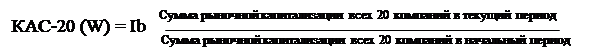 Средневзвешенный индекс КАС-20 (W) определяется следующим образом: