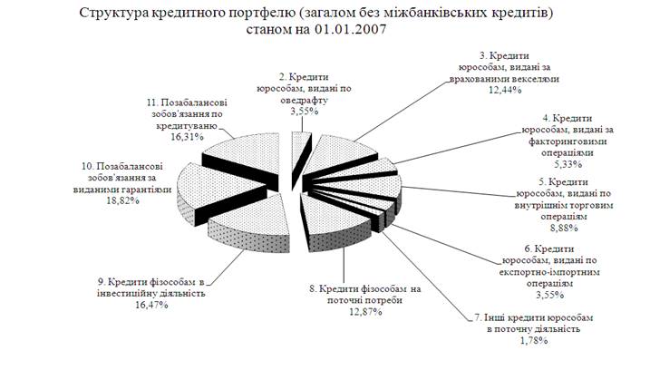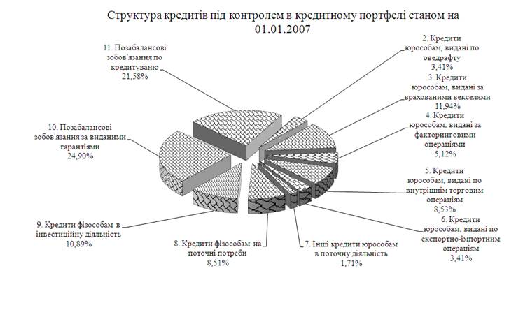 Рис.Д.2. – Структура кредитів під контролем в кредитному портфелю в АКБ «Приватбанк» станом на 01.01.2007
