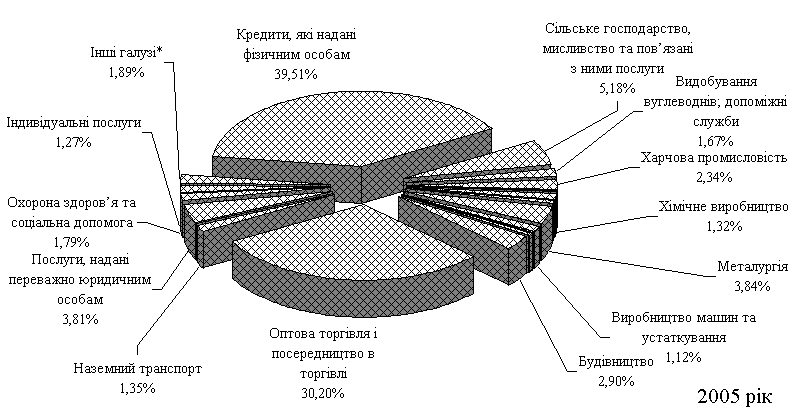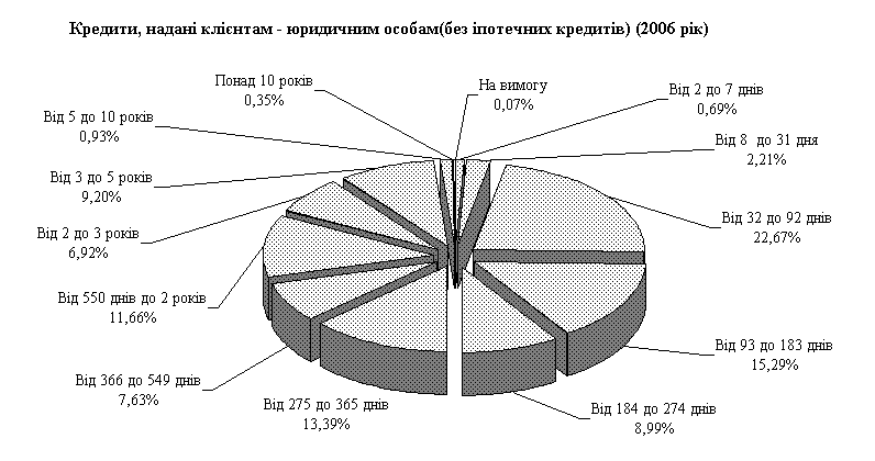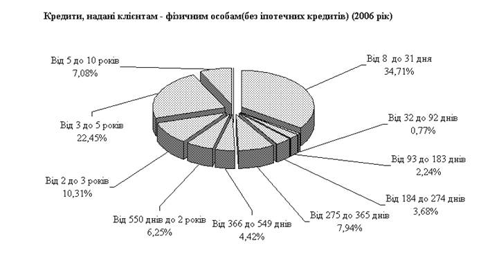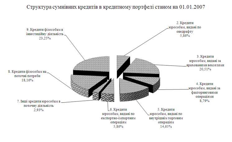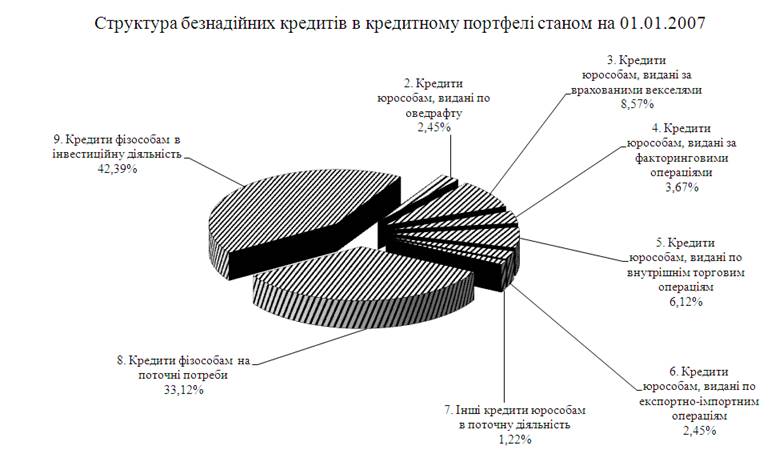 Рис.Д.5. – Структура безнадійних кредитів в кредитному портфелю в АКБ «Приватбанк» станом на 01.01.2007