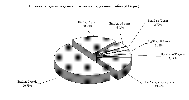 Рис.Г.5. – Структура тривалості наданих іпотечних кредитів фізичним особам в кредитному портфелі АКБ “Приватбанк” станом на 01.01.2007 року