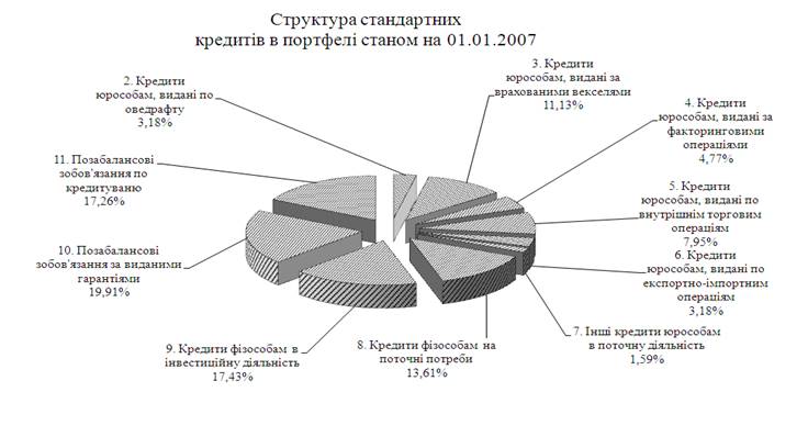 Рис.Д.1. – Структура стандартних кредитів в кредитному портфелю в АКБ «Приватбанк» станом на 01.01.2007