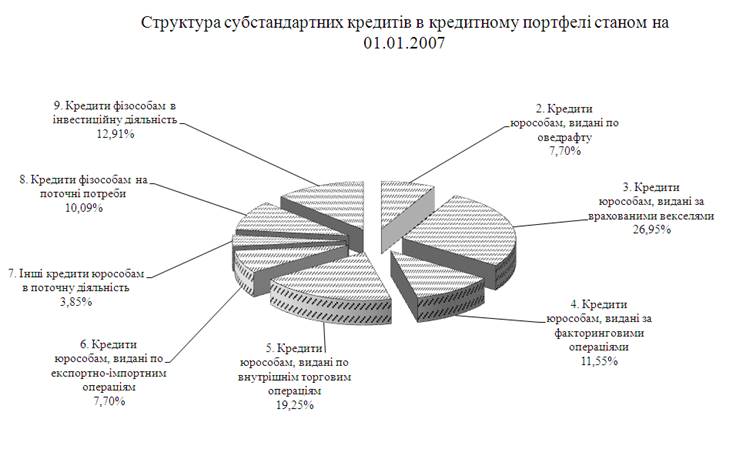 Рис.Д.3. – Структура субстандартних кредитів в кредитному портфелю в АКБ «Приватбанк» станом на 01.01.2007