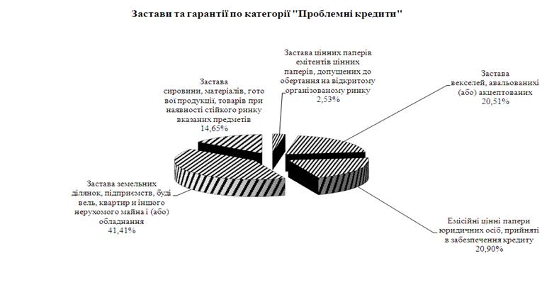 Рис.Е.4. – Структура застави та гарантій часткового забезпечення кредитного ризику в категорії «Проблеині кредити» в АКБ «Приватбанк» ( стан 01.01.2007 року)
