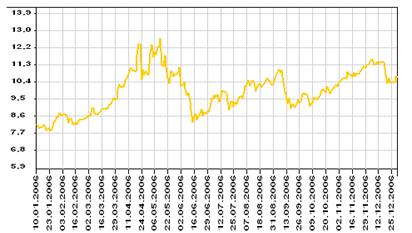 В 2006 году на мировом рынке наблюдалось повышение цен на драгоценные металлы. Цены на драгметаллы зависят от курса американской валюты и стоимости нефти. Ситуация на рынке металлов в 2006 году сложилась весьма благоприятная (в общей сложности с начала года стоимость за тройскую унцию золота выросла почти на 20%), поэтому вложив денежные средства в драгоценные металлы, по большому счету не прогадали.