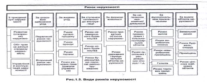 За використанням: ринки житла, комерційного, промислового і с/г призначення.