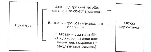 Як і будь-який товар на ринку, об'єкти нерухомості мають ціну та вартість (рис. 4.1).