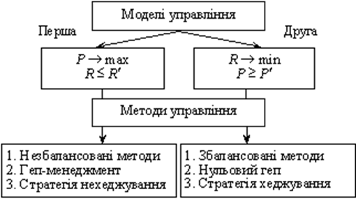 У формалізованому вигляді стратегії можна описати за допомогою моделей (рис. 1.1). У першій моделі цільовою функцією є максимізація прибутку (P) за умови обмеження ризику (R) через установлення максимально допустимого його значення (R'). У другій - мінімізація ризику за утримання показників прибутковості на певному рівні, не нижчому за заданий (P').