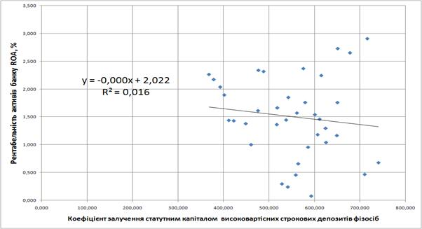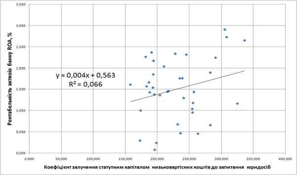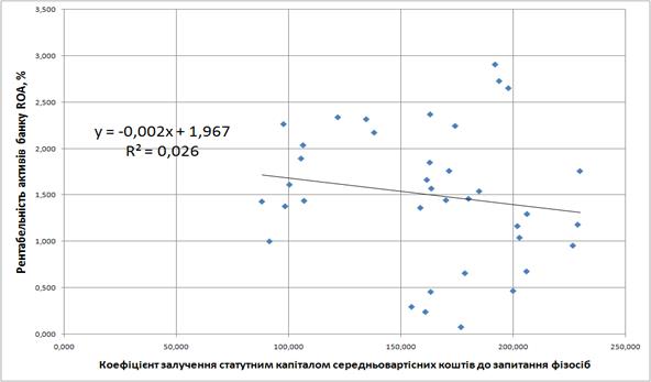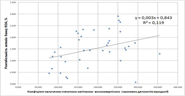 3.2 Методологія застосування кореляційно-регресійного інструментарію для оптимізації управління вартістю формування джерел ресурсів банку при стратегії максимізації рентабельності активів