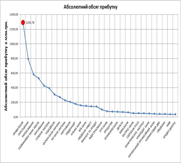Рис.Е.7. – Рейтинговий рівень абсолютного обсягу прибутку ЗАТ КБ «Приватбанк» в банківській системі України станом на 01.01.2009 року (фін.результат 2008 року)