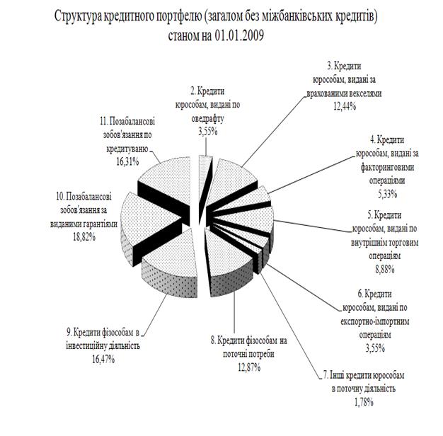 Рис. М.5 – Структура кредитів в кредитному портфелі ЗАТ КБ «Приватбанк» у 2008 році