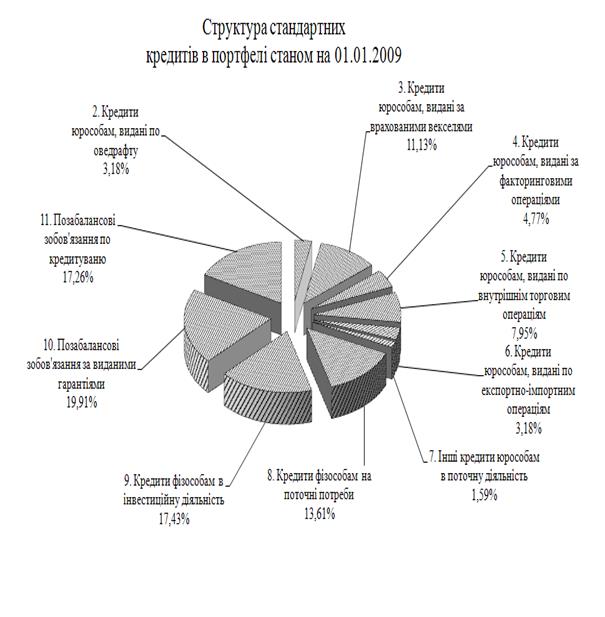 Рис. М.6 – Структура «Стандартних» кредитів в кредитному портфелі ЗАТ КБ «Приватбанк» у 2008 році