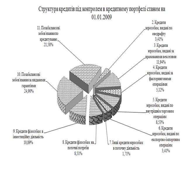 Рис. М.7 – Структура кредитів «Під контролем» в кредитному портфелі ЗАТ КБ «Приватбанк» у 2008 році