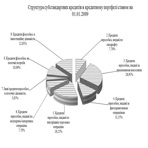 Рис. М.8 – Структура «Субстандартних» кредитів в кредитному портфелі ЗАТ КБ «Приватбанк» у 2008 році