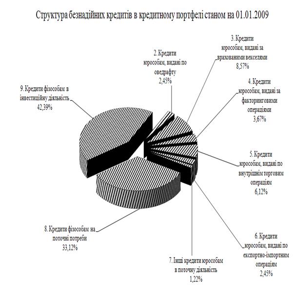Рис. М.10 – Структура «Безнадійних» кредитів в кредитному портфелі ЗАТ КБ «Приватбанк» у 2008 році