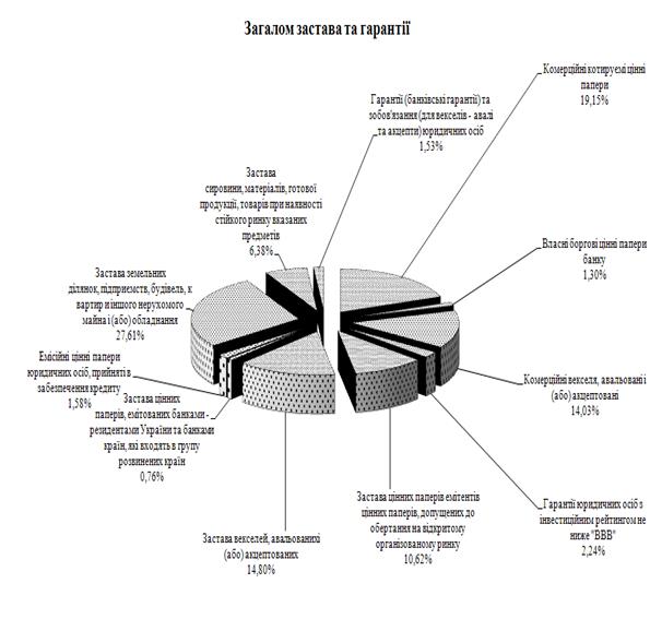 Рис. М.12 – Структура застав та гарантій на формування резервів на кредитні ризики в ЗАТ КБ «Приватбанк» у 2008 році (категорія – «Стандартні кредити»)