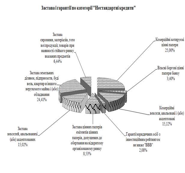 Рис. М.13 – Структура застав та гарантій на формування резервів на кредитні ризики в ЗАТ КБ «Приватбанк» у 2008 році (категорія – «Нестандартні кредити»)
