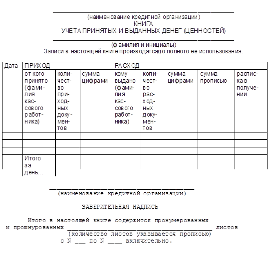 Поступившие в приходную кассу деньги могут передаваться заведующему кассой в течение операционного дня несколько раз под роспись в книге учета принятых и выданных денег (ценностей). В этих случаях, до передачи денег, кассовый работник должен убедиться в том, что фактическое их наличие соответствует общей сумме по принятым приходным документам.