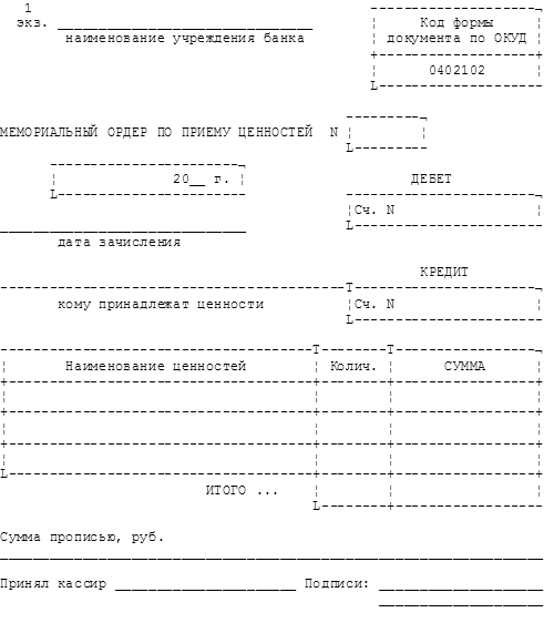 Доставленные в кредитную организацию в течение операционного дня денежная наличность и другие ценности сдаются заведующему кассой. На сумму доставленных денег или ценностей оформляется приходный ордер.